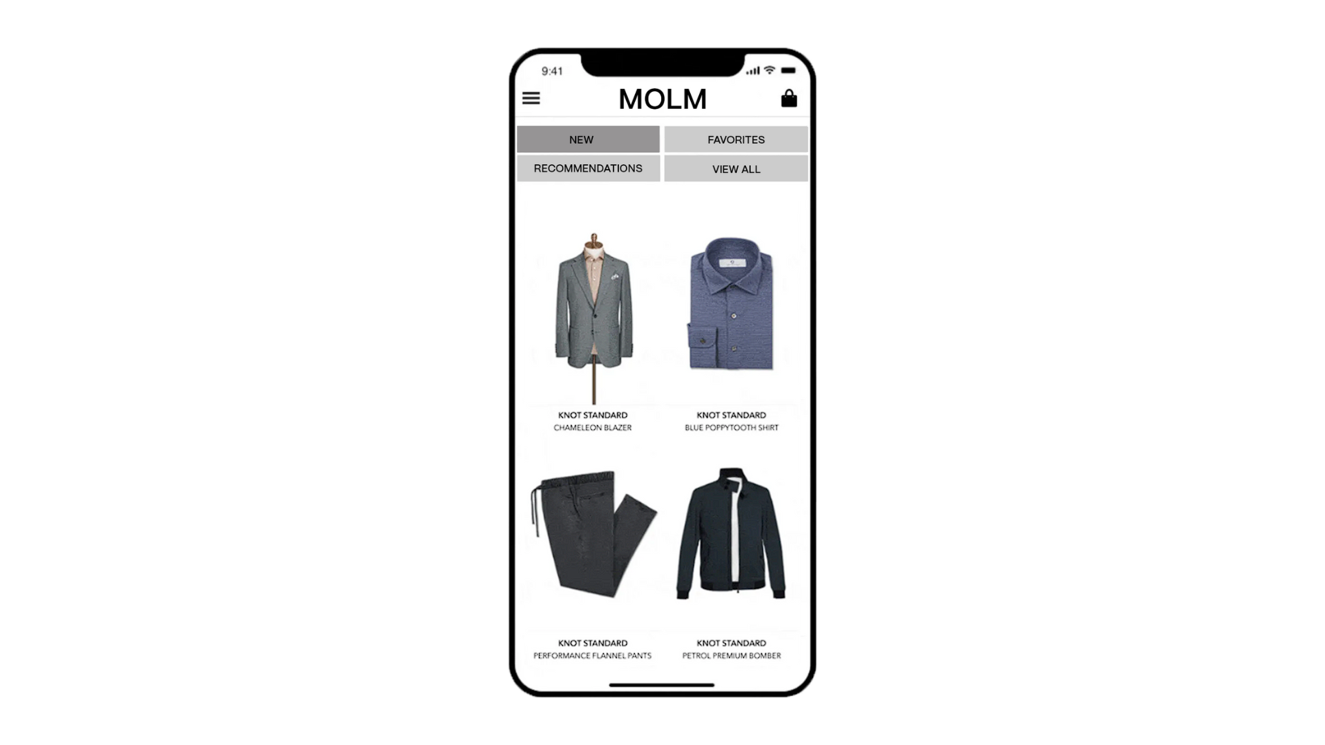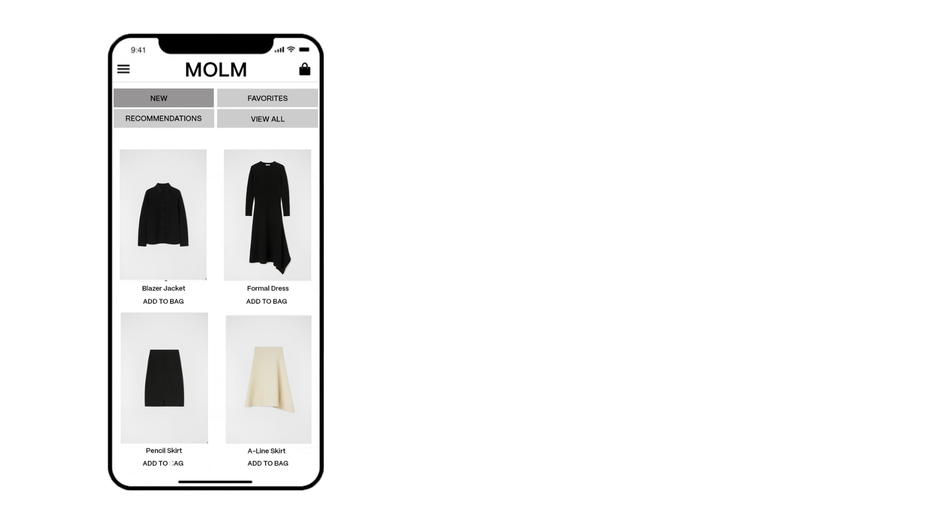Inspired by high fashion labels, the new logo reflects the contemporary and fashionabale nature of the clothes provided through MOLM. The rebrand represents the fashionable, professional, and modern attributes of MOLM's clothing through the use of clean san-serif typography, a black-and-white color palette, simple iconographs, and editorial visuals.